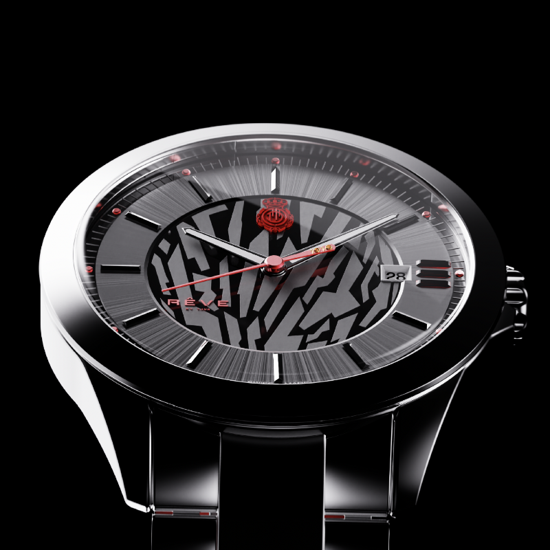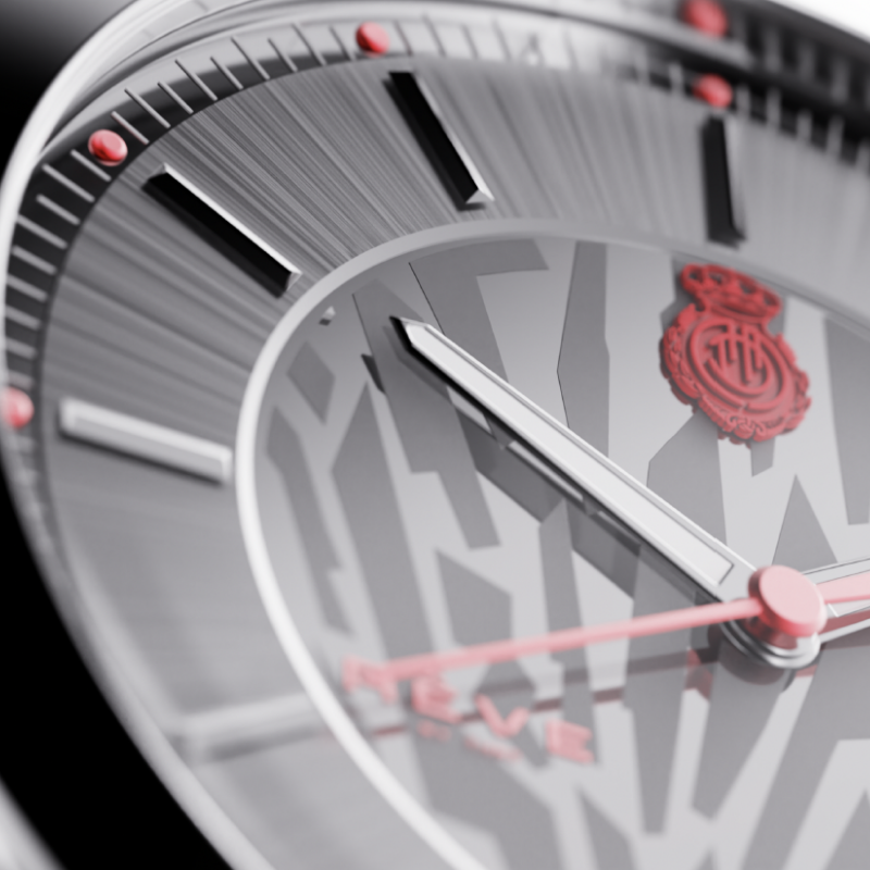 The dial features an embossed 3D crest of RCD Mallorca at its center, adding depth and texture while showcasing the club’s iconic emblem in stunning detail. This design ensures that the crest remains the central element of the watch, symbolizing pride and passion.